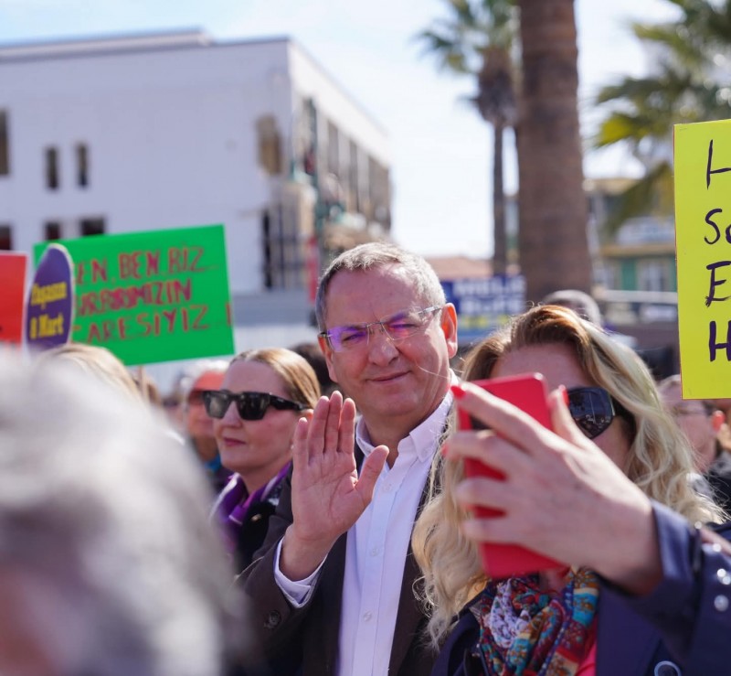 Yürüyüşe katılan vatandaşları, eşi Canan Ergin ile birlikte Cumhuriyet Meydanı’nda karşılayan Başkan Mesut Ergin, kadınların eşitlik mücadelesine destek vermeye devam edeceklerini belirtti.