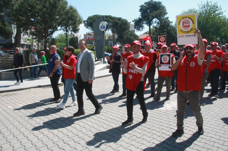 Edremit’te Vergi Dairesi önünden başlayan 1 Mayıs yürüyüşüne katılan sendikalar, sivil toplum kuruluşları ve siyasi partiler Baraj Caddesi ve Azerbaycan Bulvarı üzerinden devam ederek Şehit Hamdibey Meydanı’nda toplandı. Yürüyüşe ve kutlama programına Edremit Belediye Başkanı Selman Hasan Arslan da eşlik etti. Meydanda yapılan saygı duruşu ve İstiklal Marşı’nın okunmasının ardından etkinlikler 1 Mayıs Tertip Komitesi Başkanı, DİSK/Genel-İş Edremit Belediyesi Baştemsilcisi Ceyda Uzunkaya’nın konuşması ile başladı.