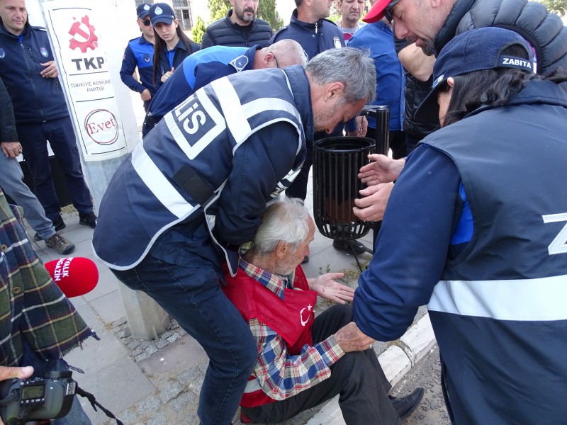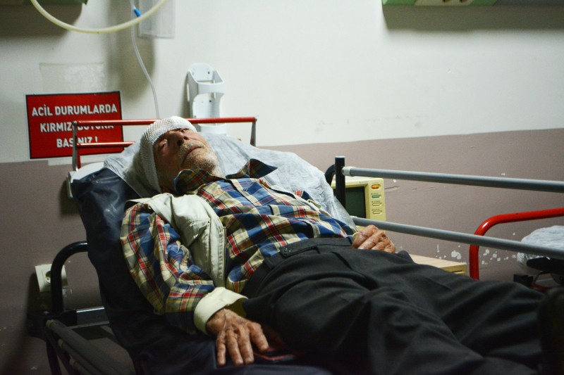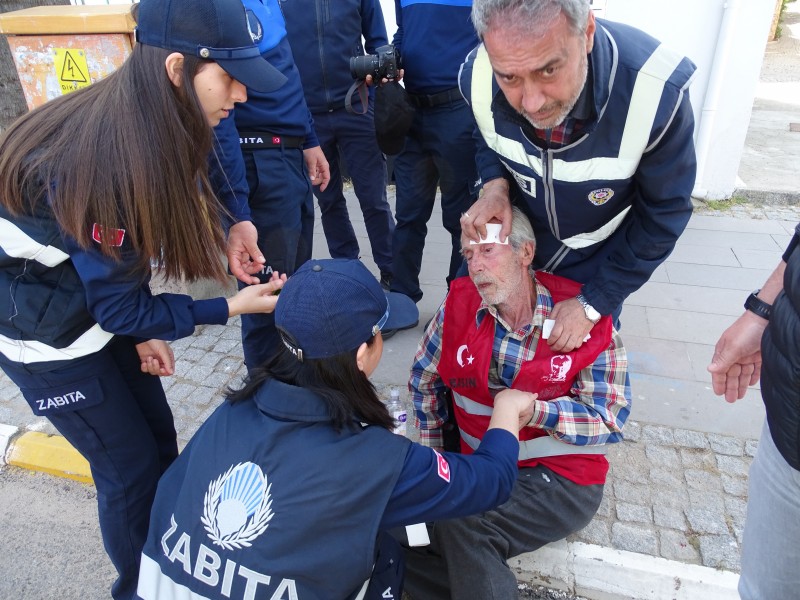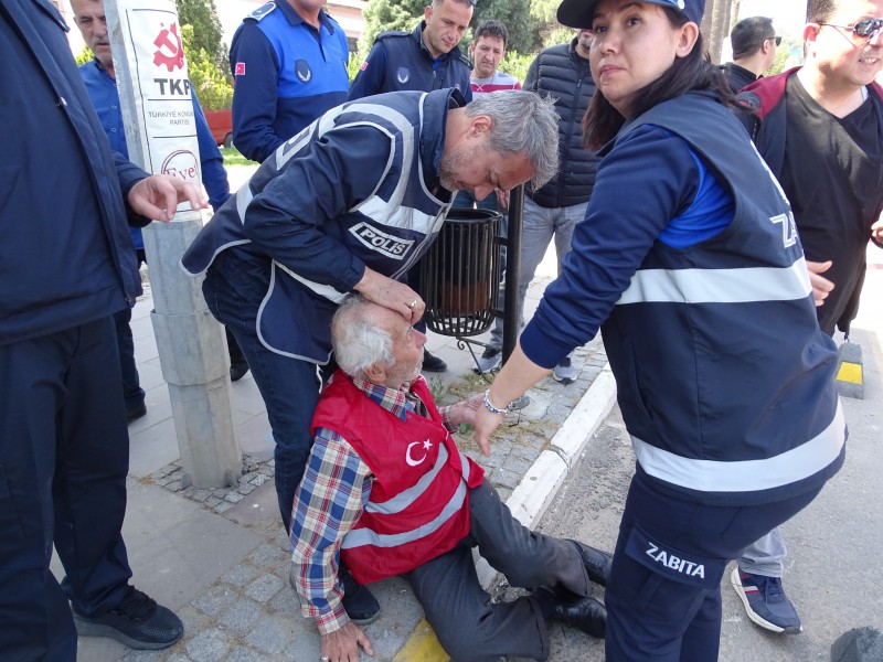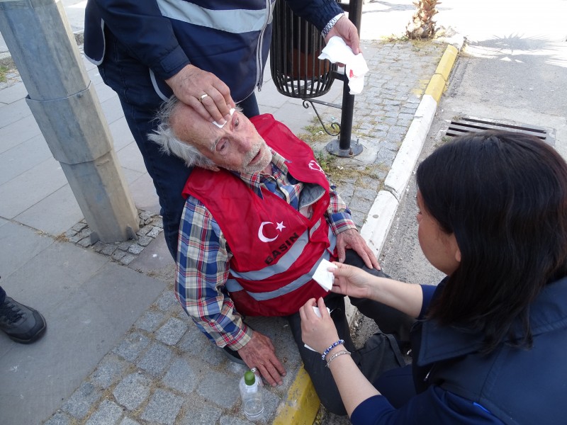 Ayvalık ilçesinin en eski gazetecisi 81 yaşındaki Ömür Bir, 1 Mayıs yürüyüş kortejine ait haberin fotoğraflarını çekerken ayağının yol kenarındaki reflektörlü taş dubaya takılması sonucunda başını yere vurarak yaralandı.