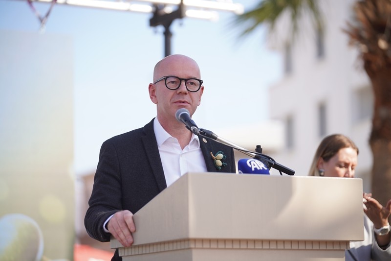 Festivalin açılış konuşmasını yapan Ayvalık Belediye Başkanı Mesut Ergin, konuklara, “Zeytin dostlarımız” diye seslendi.