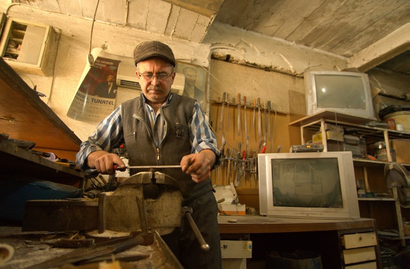 Burhaniye'de ki mütevazı atölyesinde, kor ateşin başında ter dökmeye devam eden Tanju Pulat, bir taraftan mesleğini yaparken diğer taraftan da mirasını devredecek bir el arıyor.