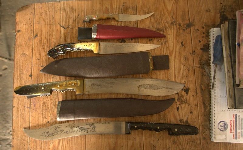 Bıçaklara işleme yapıyor