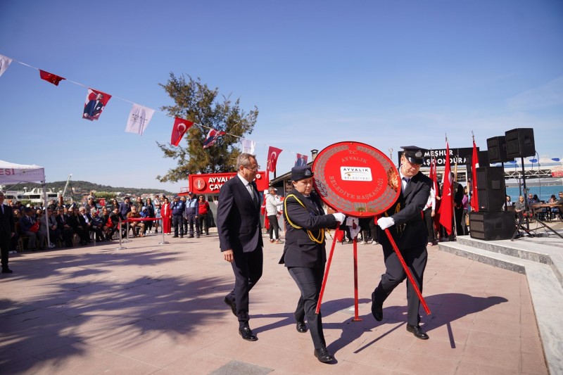 Cumhuriyet Meydanı’nda gerçekleştirilen tören, saygı duruşu ve İstiklal Marşı ile devam etti. Çelenk takdimleri ve vatandaşların Atatürk anıtına çiçek sunumunun ardından Ayvalık Belediye Başkanı Mesut Ergin yaptığı konuşmada, 91 yıl önce, bugün Ayvalık’a gelip bu toprakları ziyaret eden Ulu Önder Mustafa Kemal Atatürk’ün güzergâhından yürüyerek halkın karşısına gelmekten duyduğu mutluluğu dile getirdi. 13 Nisan 1934 tarihinde Atatürk’ün o günlerde yaptığı yurt gezileri kapsamında Ayvalık’ı da 91 yıl önce ziyaret ettiğini hatırlatan Başkan Ergin şöyle konuştu: