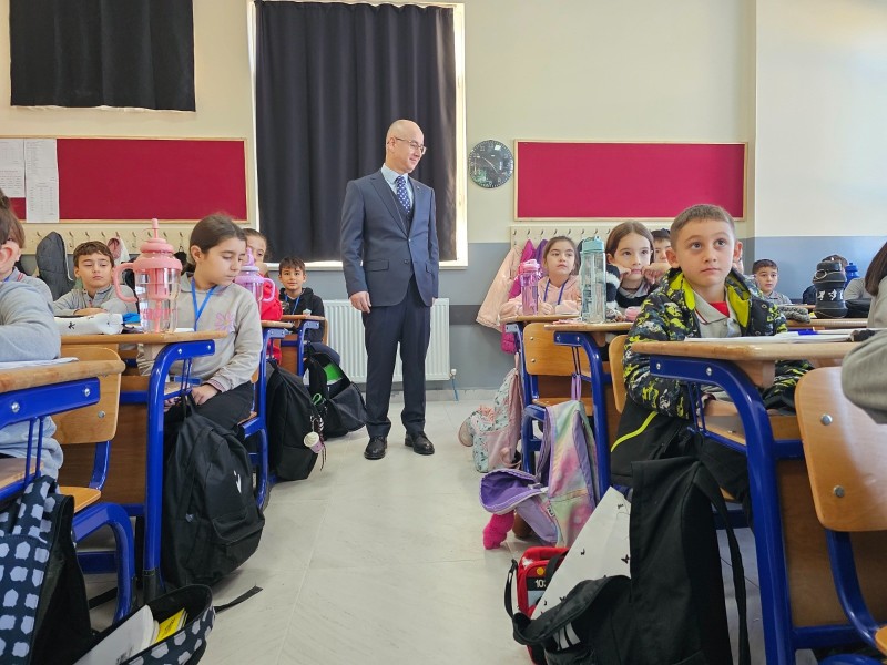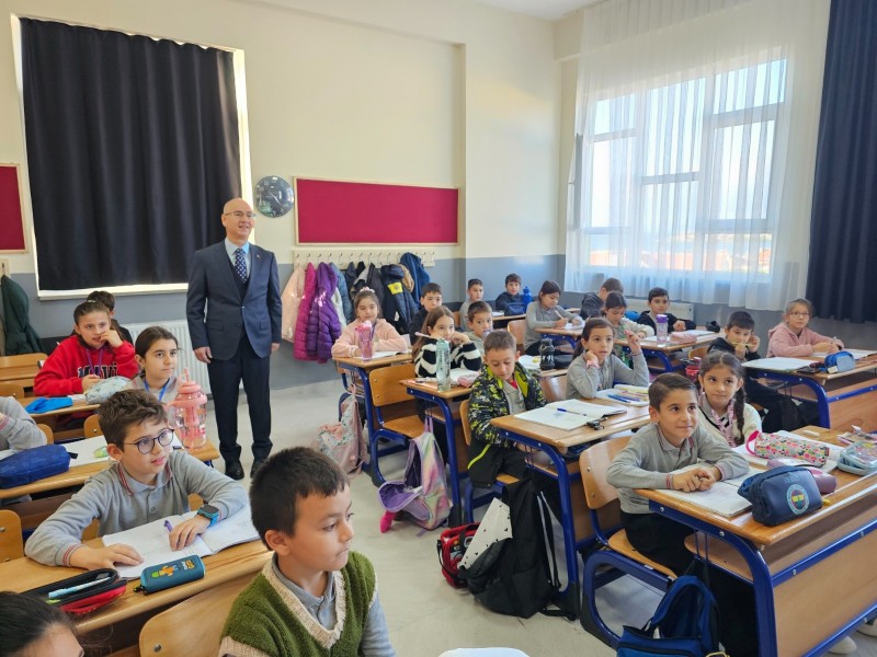 Okulun fiziki imkânları ile eğitim-öğretim düzeyi hakkında okul idarecilerinden bilgiler alan Kaymakam Yaman, sınıfları gezerek öğrencilerin derslerine de eşlik etti.
