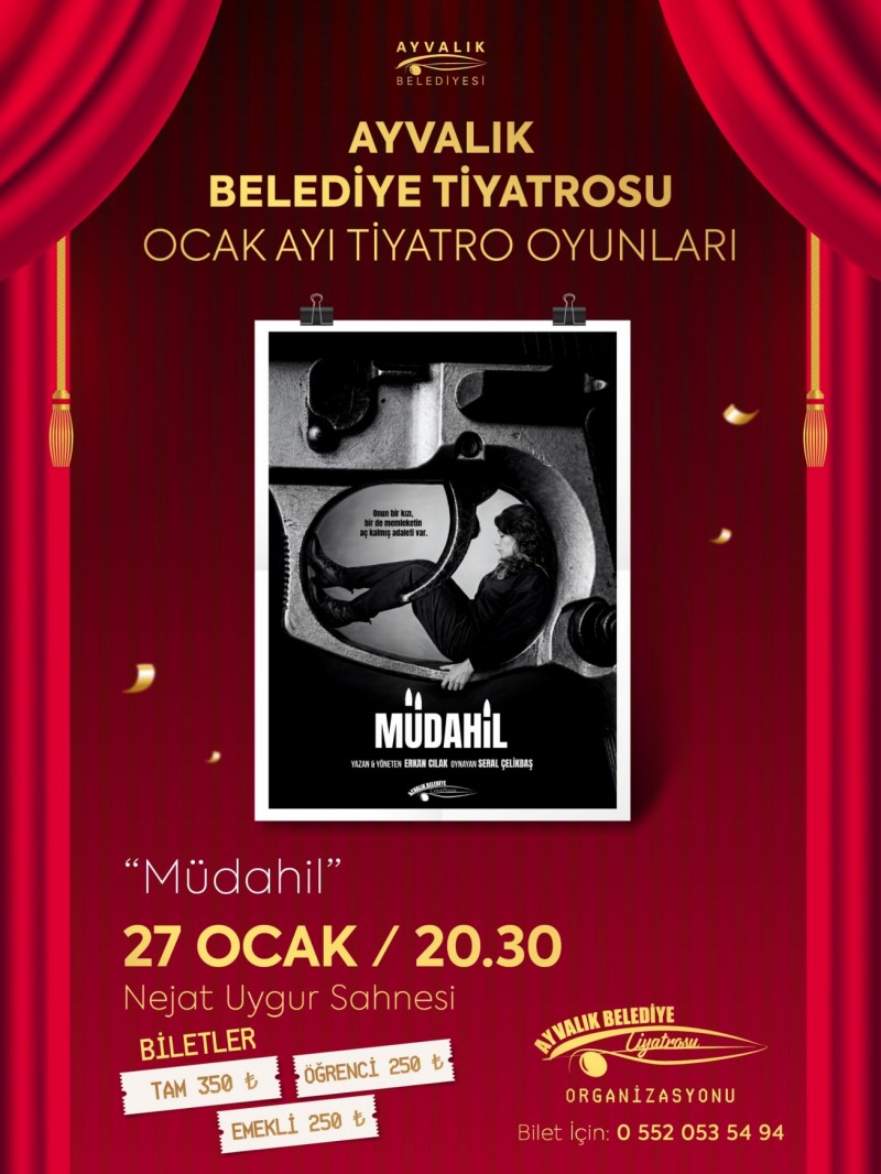 Ayvalık Belediye Tiyatrosu Genel Sanat Yönetmeni Erkan Cılak’ın yazdığı ve yönetmenlik koltuğuna oturduğu, Seral Çelikbaş’ın performansıyla sahneye konan ikinci proje, Türkiye’de, hemen her yıl cinayete kurban giden kadınların yaşamlarına dikkat çeken Müdahil isimli oyun da 15 Ocak Perşembe akşamı prömiyer yaparak izleyiciyle buluşacak.