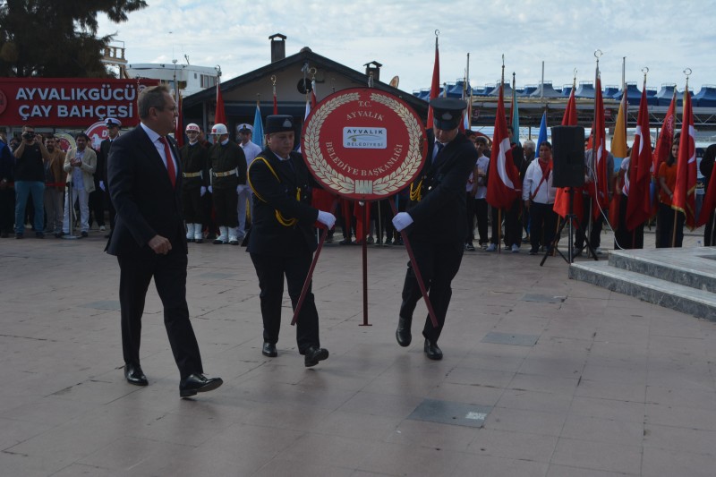 Ayvalık Kaymakamı Hasan Yaman, Garnizon Komutanı Personel Albay Hüseyin Aydın, Belediye Başkanı Mesut Ergin ve İlçe Cumhuriyet Başsavcısı Mehmet Fatih Acemoğlu’nun öncülüğünde gerçekleşen törene; daire amirleri, gaziler, siyasi partilerle sivil toplum kuruluşlarının temsilcileri, öğretmenler, öğrenciler ve kalabalık bir vatandaş topluluğu katıldı.