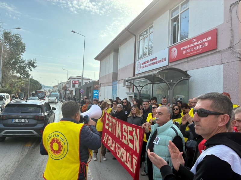 Eğitim Sen Ayvalık Temsilcisi Dilaver Şener ile Eğitim İŞ Ayvalık Temsilcisi Hüseyin Altay tarafından okunan ortak basın açıklamasında,