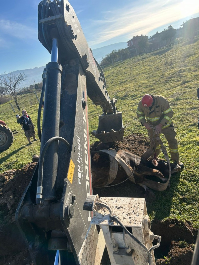 Olayı fark eden vatandaşların ihbarı üzerine Balıkesir Büyükşehir Belediyesi İtfaiye ekipleri ile Sındırgı Belediyesi ekipleri kısa sürede bölgeye ulaştı. Kuyuda mahsur kalan ineği kurtarmak için iş makinesi desteğiyle titiz bir çalışma yürütüldü.