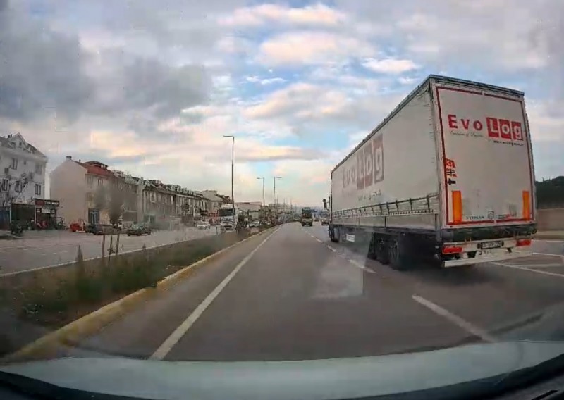 Bandırma ilçesi Gönen yolunda, EVO Log firmasına ait 34 plakalı tır hatalı sollama ve aşırı hız yaparak trafikte vatandaşlara zor anlar yaşattı. Tehlikeli sürüş anları, bir vatandaşın araç kamerasına yansıdı.
