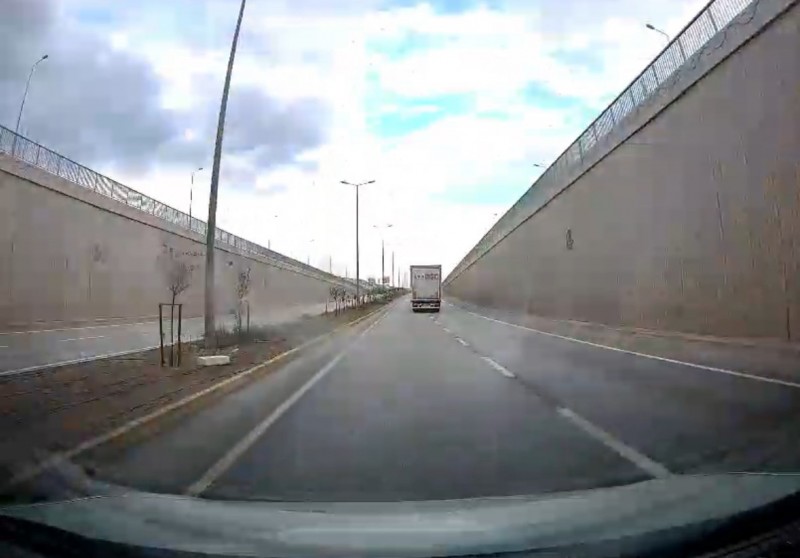 Edinilen bilgilere göre, şehir içi hız sınırını aşan tır sürücüsü, diğer araçları tehlikeye düşürecek şekilde ardı ardına sollama yaptı. Görüntülerde tırın kontrolsüz şekilde şerit değiştirdiği ve trafikteki sürücülere risk oluşturduğu anlar yer aldı.