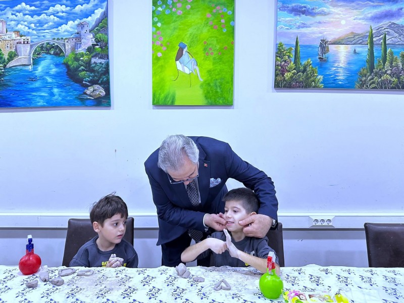 Atölye alanında çocuklarla yakından ilgilenen Başkan Mirza, miniklerin seramik çalışmaları yaparken yaşadıkları heyecana ve mutluluğa ortak oldu. Çocukların el becerilerini geliştirirken aynı zamanda hayal güçlerini de ortaya koydukları atölyelerde, renkli ve keyifli anlar yaşandı. Başkan Mirza, çocukların üretim sürecine duydukları ilginin ve ortaya koydukları eserlerin kendilerini son derece mutlu ettiğini ifade etti.