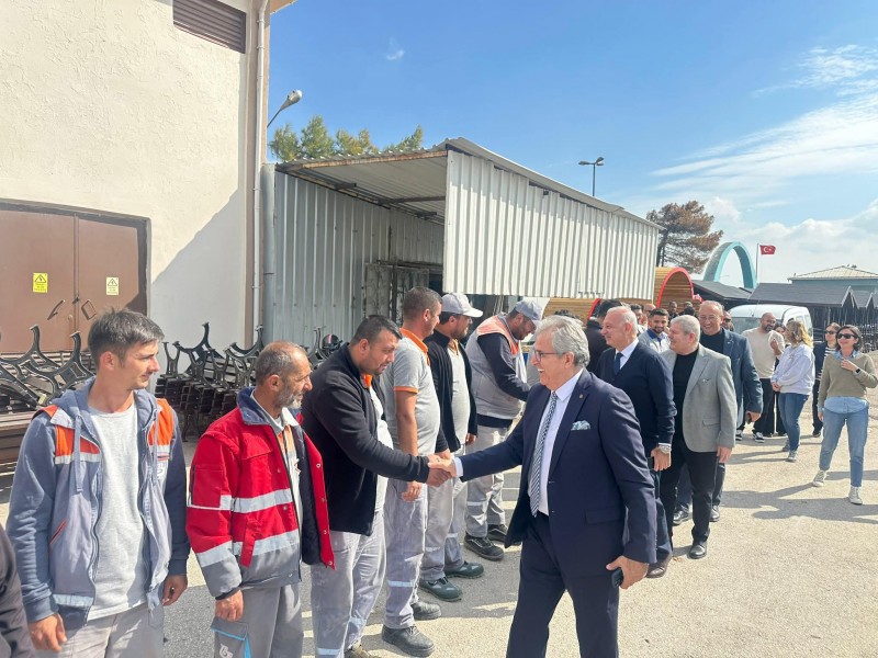 Bandırma Belediye Başkanı Dursun Mirza, bugün öğle saatlerinde Park ve Bahçeler Müdürlüğü şantiyesini ziyaret ederek belediye çalışanlarıyla yemekte bir araya geldi.