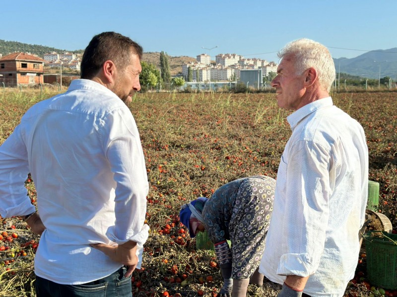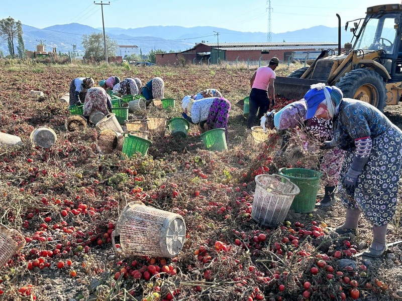 Sındırgı Belediye Başkanı Ekrem Yavaş, Sındırgı'da domates hasadına katıldı.