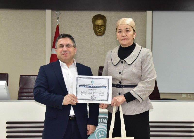 BALIKESİR ÜNİVERSİTESİ İLE KIRGIZİSTAN OSH DEVLET ÜNİVERSİTESİ ARASINDA GERÇEKLEŞTİRİLEN AKADEMİK İŞ BİRLİĞİ PROGRAMI, DÜZENLENEN SERTİFİKA TÖRENİ İLE TAMAMLANDI.