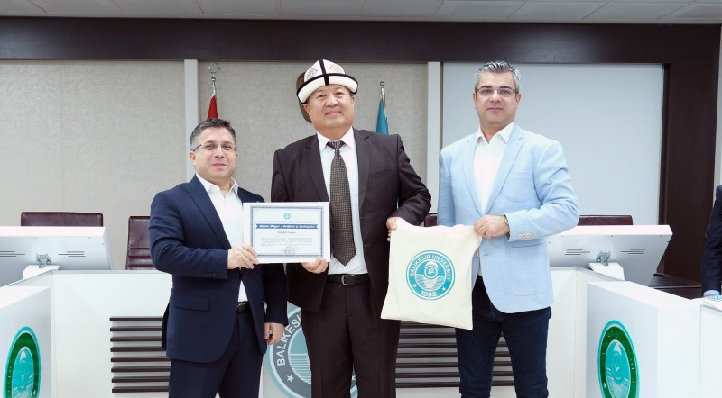 KIRGIZİSTAN OSH DEVLET ÜNİVERSİTESİNDEN GELEN VE BAŞKANLIĞINI KURSANTBEK ATTOKUROV’UN YAPTIĞI AKADEMİSYEN HEYETİNİN BALIKESİR ÜNİVERSİTESİNDEKİ AKADEMİK TEMAS VE İNCELEME PROGRAMI KAPSAMINDA GERÇEKLEŞTİRİLEN FAALİYETLERİ REKTÖRLÜK SENATO SALONU’NDAKİ SERTİFİKA TÖRENİ İLE SONA ERDİ. TÖRENE BALIKESİR ÜNİVERSİTESİ REKTÖRÜ PROF. DR. YÜCEL OĞURLU İLE REKTÖR YARDIMCILARI CEVDET AVCIKURT, PROF. DR. MURAT DOĞDUBAY, PROF. DR. FATİH SATIL’IN YANI SIRA; KONUK HEYETİN AKADEMİK FAALİYETLERİNİ GERÇEKLEŞTİRDİĞİ BİRİMLERDEN İKTİSADİ VE İDARİ BİLİMLER FAKÜLTESİ DEKANI PROF. DR. SUAT KARA, GÜZEL SANATLAR FAKÜLTESİ DEKANI PROF. DR. SELVİHAN KILIÇ ATEŞ, FEN-EDEBİYAT FAKÜLTESİ DEKANI PROF. DR. HALİL İBRAHİM ŞAHİN VE HUKUK FAKÜLTESİ DEKANI PROF. DR. MUSTAFA YASAN DA YER ALDI.