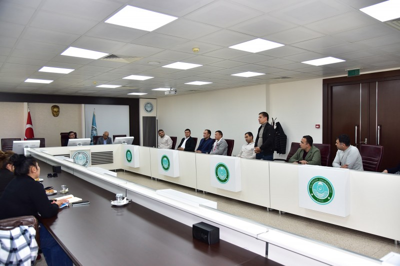 Balıkesir Üniversitesinde, Özbekistan İnovasyon Bakanlığı tarafından düzenlenen yarışma sonucunda araştırma ve akademik çalışmalara katılma hakkı kazanan akademisyen ve lisansüstü araştırmacılar, Rektör Prof. Dr. Yücel Oğurlu ile bir araya geldi. Rektörlük Senato Salonu’nda gerçekleştirilen görüşmede, Rektör Yardımcısı Prof. Dr. Fatih Satıl ve Genel Sekreter Yemliha Yanar da yer aldı. Uluslararası İlişkiler Genel Koordinatörü Doç. Dr. İhsan Kısadere’nin de katıldığı ziyarette konuk araştırmacılar yürüttükleri çalışmalar hakkında bilgi paylaşımında bulunarak Balıkesir Üniversitesinde gerçekleştirdikleri akademik faaliyetlerin verimli şekilde sürdüğünü ifade ettiler. Konuk araştırmacılara ilgi ve desteği için Rektör Prof. Dr. Yücel Oğurlu’ya ve üniversite yönetimine de teşekkür ettiler. Rektör Prof. Dr. Yücel Oğurlu da misafir araştırmacıları çalışmalarındaki ilerlemeler dolayısıyla tebrik ederek iki ülke arasındaki bilimsel iş birliklerinin güçlenmesinden duyduğu memnuniyeti dile getirdi. Rektör Oğurlu konuk araştırmacılara çalışmalarında döneminde de başarılar diledi.