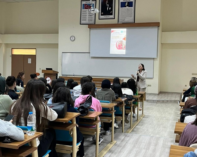 Fakülte öğrencilerin yoğun ilgi gösterdiği etkinlikte; dijitalleşen sağlık hizmetlerinde iletişimin önemi, insan merkezli yaklaşımın korunması ve empati becerilerinin geliştirilmesi konuları ele alındı. Prof. Dr. Yurdanur Dikmen, teknolojinin de etkisiyle hızla değişen sağlık ortamında iletişim becerilerinin sağlık profesyonelleri için hayati bir unsur olduğunu vurgulayarak, öğrencilerle deneyimlerini paylaştı.