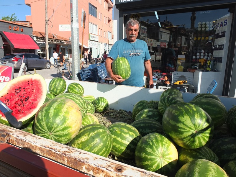 Kendi ürettiği karpuzları ilçe merkezinde satan İbiş, ekonominin gelişmesi için üretmek gerektiğini söyledi.