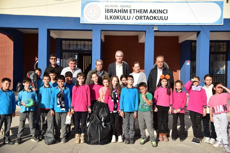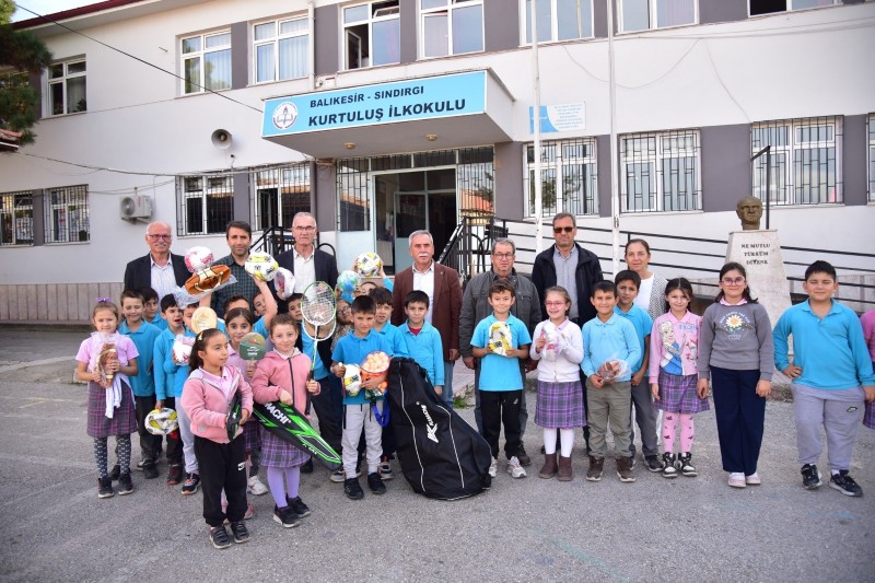 Basketbol, futbol ve voleybol topları ile pinpon topu ve badminton malzemelerinden oluşan spor ekipmanları; Balıkesir Büyükşehir Belediyesi’nin desteğiyle Sındırgı Belediye Başkanı Serkan Sak, Belediye Başkan Yardımcısı İsmail Sönmez ve belediye meclis üyeleri tarafından okullara teslim edildi.