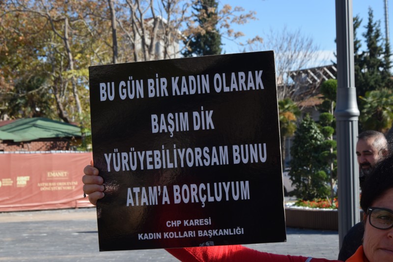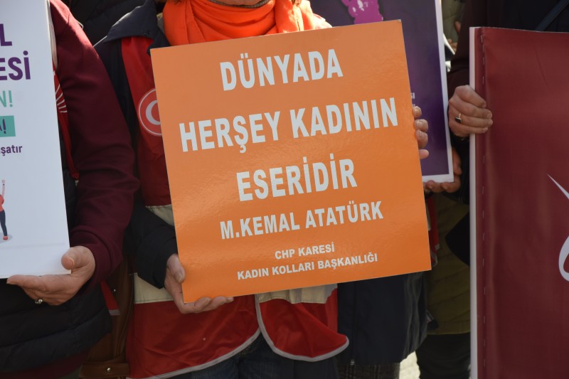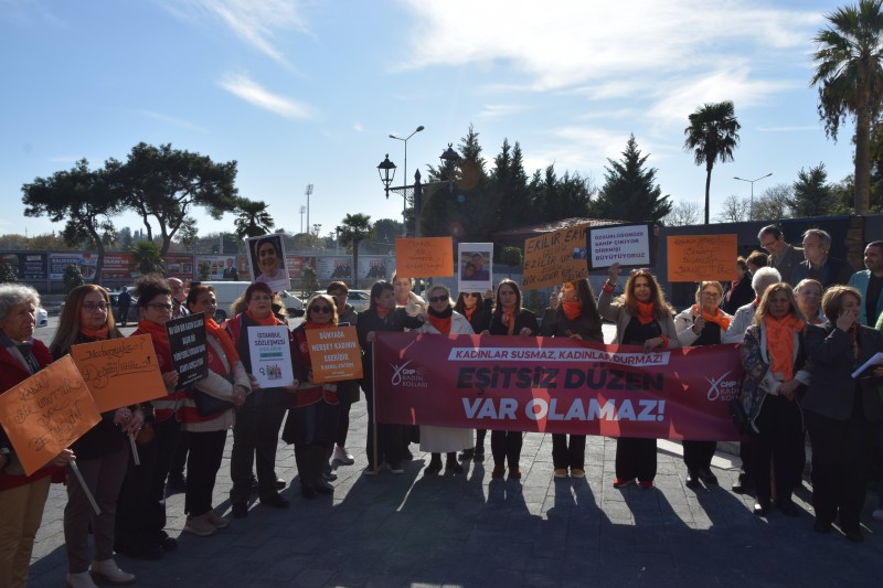 25 Kasım Kadına Yönelik Şiddete Karşı Uluslararası Mücadele Günü adına Cumhuriyet Meydanı'nda CHP kadın kolları basın açıklamasında bulundu. CHP Balıkesir Kadın Kolları İl Başkanı Ayşe Pınar Yahşi basın açıklamasında şu sözleri kullandı:
