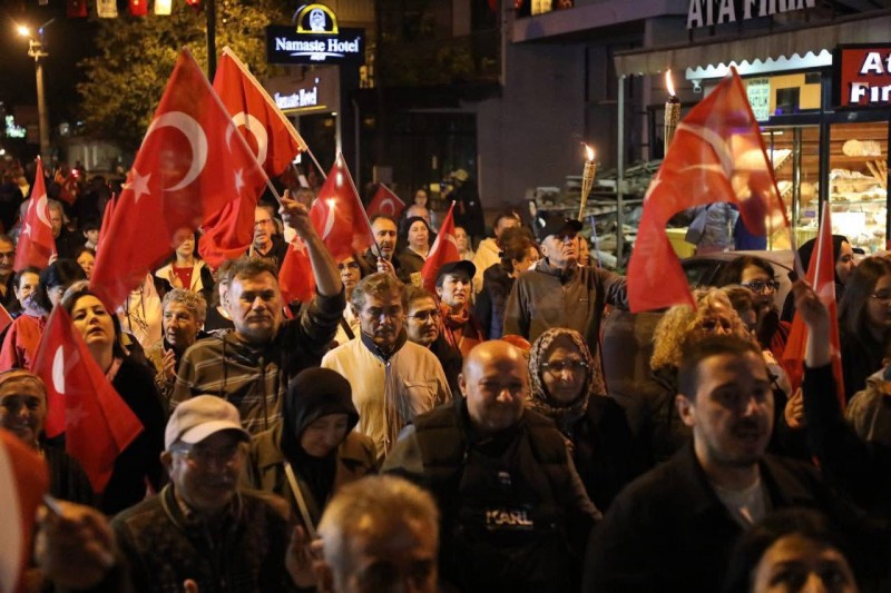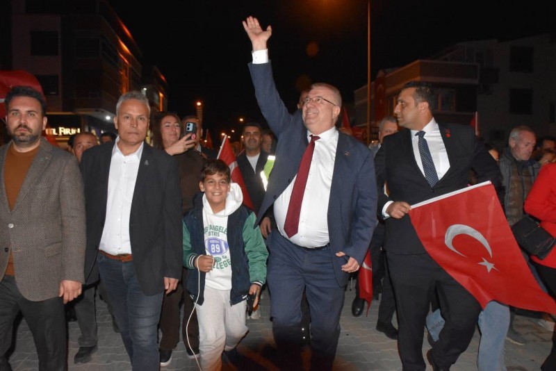 Akşam saatlerinde Altınkum Mahallesi 2. Köprü’den başlayıp Akçay Cumhuriyet Meydanı’na kadar süren Fener Alayı’na binlerce Edremitli, ellerinde meşaleler ve Türk bayraklarıyla katıldı. Marşlar ve alkışlar eşliğinde ilerleyen kortej, Akçay sahilini kırmızı-beyaza bürüdü. Yürüyüşün ardından meydanda toplanan kalabalığa hitap eden Edremit Belediye Başkanı Mehmet Ertaş, konuşmasında Cumhuriyet’in önemine vurgu yaptı. Ertaş, Cumhuriyet kadınlarına, Atatürk’ün gençlerine ve tüm Edremitlilere hitaben yaptığı konuşmada, Cumhuriyet’in 102. yılını kutladı. “Bugün bu korteje katılanlara, bu meydanda toplananlara, göğsünü gere gere ‘Yaşasın Cumhuriyet’ diyenlere selam olsun.” diyerek sözlerine başlayan Başkan Ertaş, “Hayat cömert değildir, mesela Atatürk yüz yıllarda bir gelir, kıymetini bilelim. Edremit biliyor ama herkes bilsin ki; her şey biter Cumhuriyet kalır, herkes gider Atatürk kalır.” ifadelerini kullandı. Cumhuriyet’in, Edremitli bir köy çocuğunun belediye başkanı veya milletvekili olabilmesi, zeytin toplayan ellerin Meclis’te kanun yapabilmesi, kadının yalnızca üreten değil yöneten olması anlamına geldiğini belirten Başkan Ertaş, Cumhuriyet’in hiçbir Edremitlinin soyuna, soyadına, parasına ya da dayısına bakılmadan geleceğe umutla bakabilmesini sağladığını söyledi. Ertaş, konuşmasını “Cumhuriyet Edremit’tir, Edremit Cumhuriyet’tir.” sözleriyle sürdürdü.