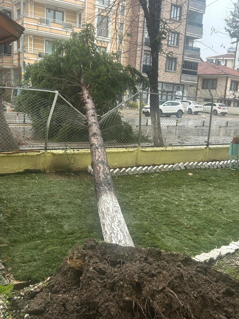 Dursunbey ilçesinde öğle saatlerinde aniden çıkan fırtına ilçe genelinde ağaçları ve çatıları uçurdu. Fırtına sonrası devrilen ağaç ve çatılardan otomobillerin üstüne düşen profiller hasar oluşturdu.