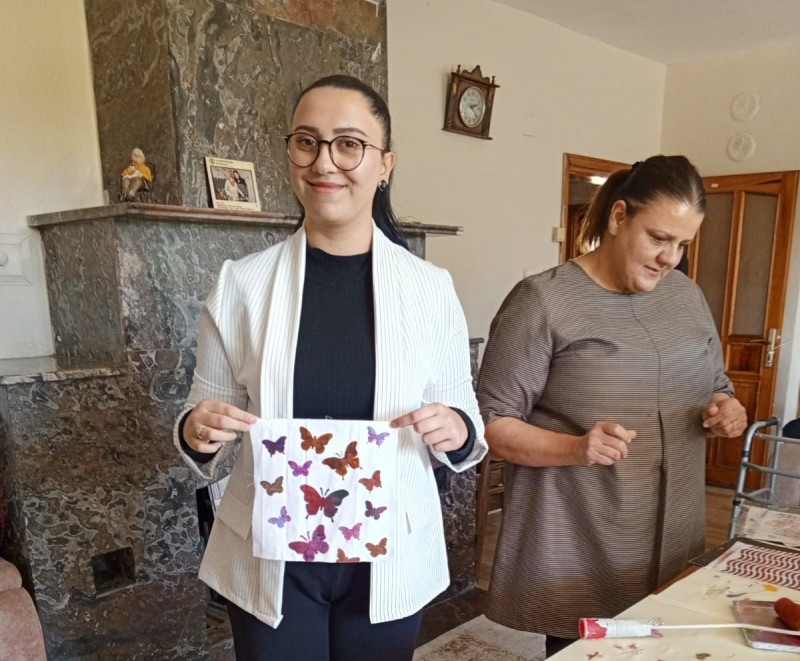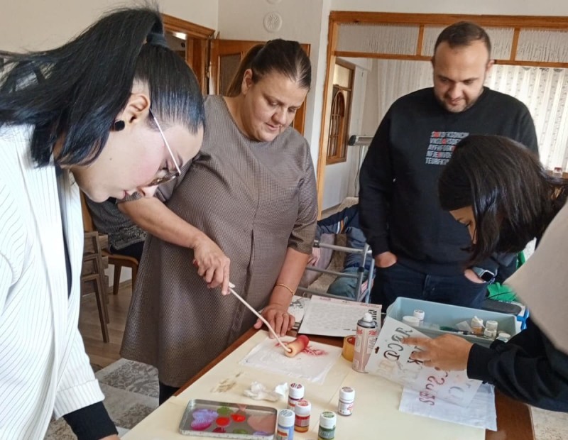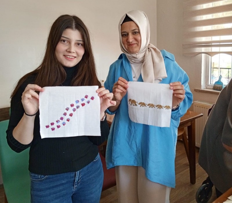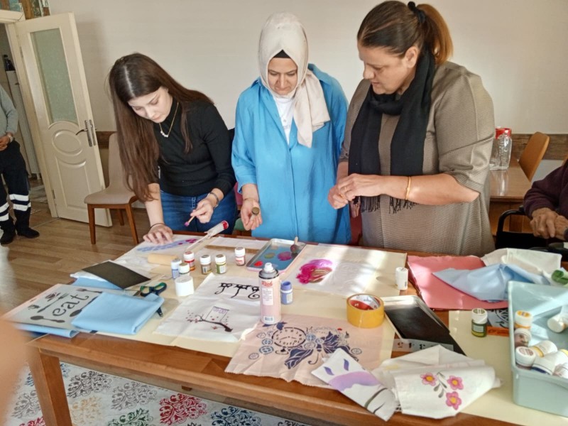 Etkinlikte ayrıca katılımcılarla birlikte stencil tasarımlar kullanılarak kumaş üzerine baskı çalışmaları yapıldı. Etkinlik, kuşaklar arası etkileşimin güçlenmesine de katkı sağladı.