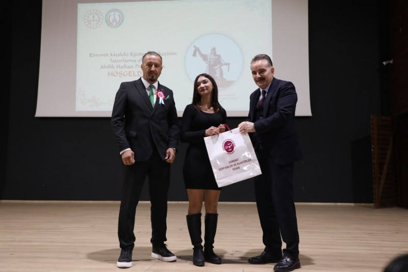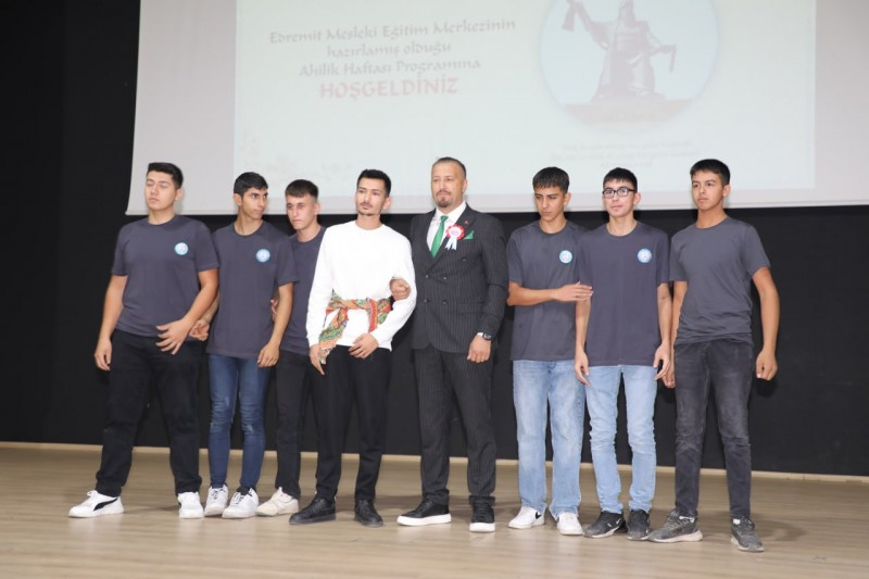 Saygı duruşu ve İstiklal Marşı’nın okunmasının ardından Edremit Kaymakamı Ahmet Odabaş, Belediye Başkanı Mehmet Ertaş ve Edremit Terziler ve Tuhafiyeciler Esnaf Odası Başkanı Yüksel Kaplan günün anlam ve önemine dair konuşmalar yaptı.Törende, Ahilik gelenekleri canlandırıldı. Edremit Çıraklık Eğitim Merkezi mezunları, Ahilik yemini etti. Ardından Edremit Berberler ve Kuaförler Odası Başkanı Metin Koyuncu, mesleki eğitimde başarı gösteren öğrencilere, Ahiliğin simgesi olan şed kuşatma törenini gerçekleştirdi.