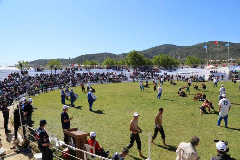 Birbirinden iyi başpehlivanların yarışacağı 17. Edremit Şehit Hamdibey Güreşleri, 26 Temmuz Çarşamba günü saat 17.00'de Edremit Güreş Sahası'nda başlayacak. (İHA)