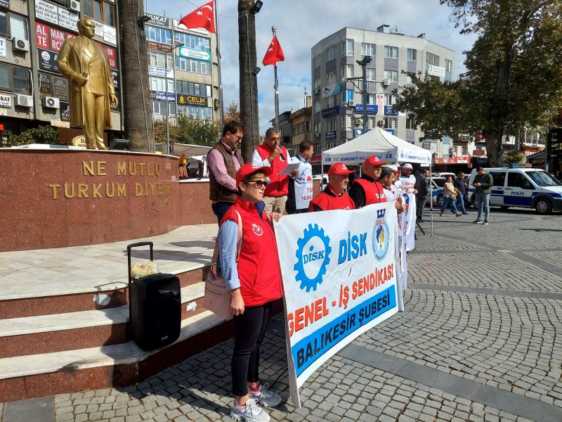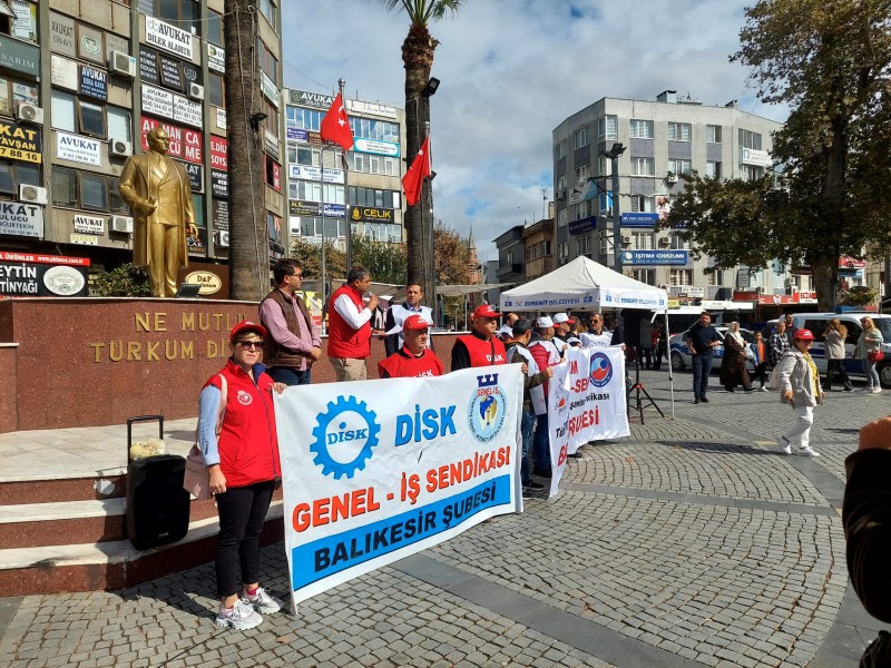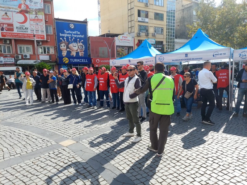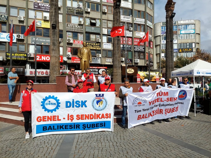 Basın açıklamasına DİSK/Genel-İş Sendikası Balıkesir Şube Başkanı Hüseyin Ovalı, Tüm Yerel-Sen Balıkesir Şube Başkanı Sezer Yıldız, Tüm Bel-Sen Balıkesir Şube Başkanı İlker Demirbay, ve çok sayıda belediye çalışanı katıldı. (Haber Merkezi)