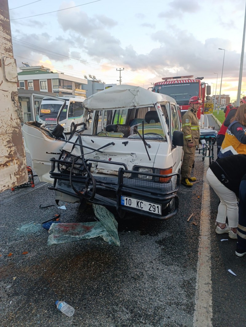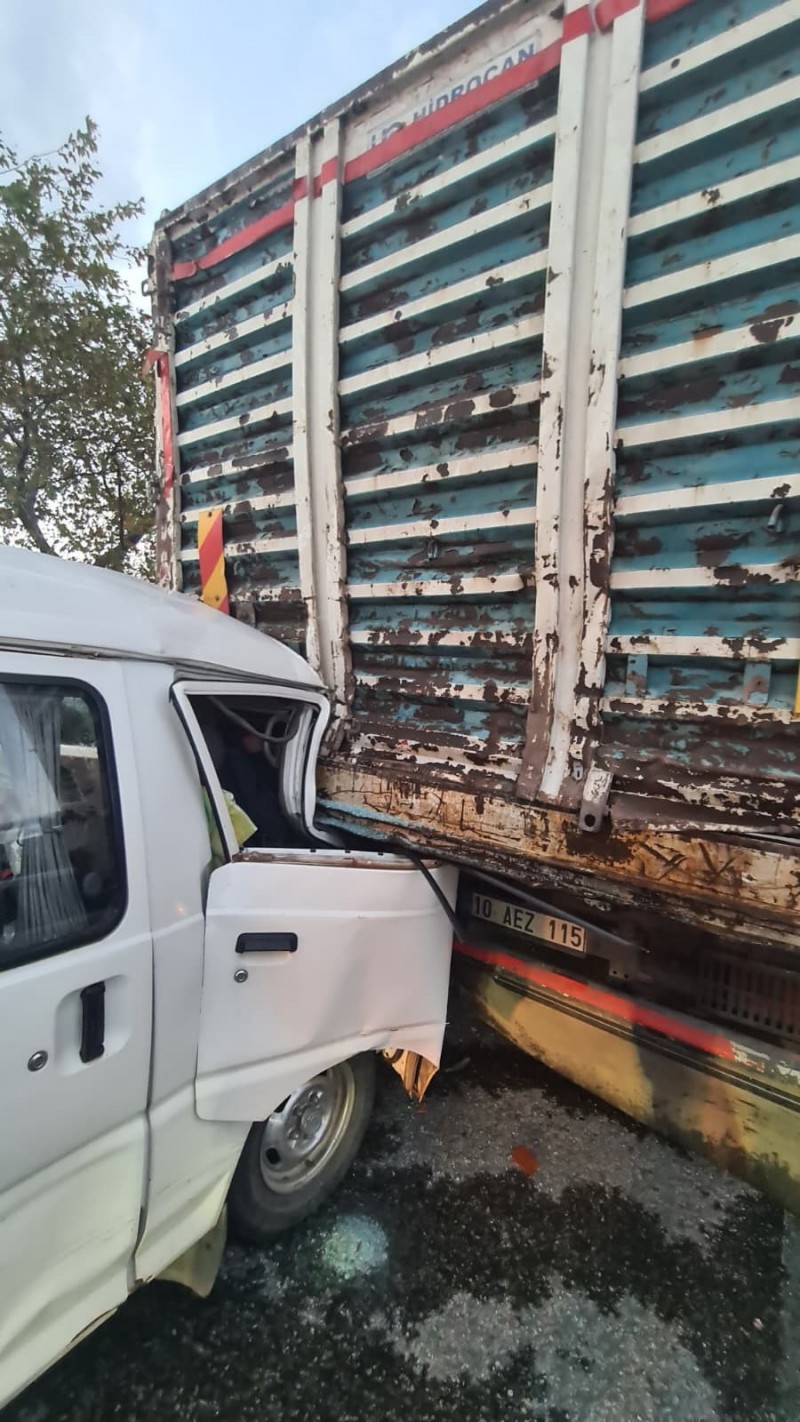 Edinilen bilgiye göre, 10 AEZ 115 plakalı kamyon, 10 ALS 335 plakalı otomobil ve 10 KC 291 plakalı kamyonet çarpıştı. Kazada araç içinde sıkışan bir vatandaş itfaiye ekiplerinin müdahalesiyle bulunduğu yerden çıkarılarak sağlık ekiplerine teslim edildi. Kazada araçlarda bulunan R.Ç., Ç.Ç., N.K., N.G. ve F.A. yaralandı. Yaralılar sağlık ekipleri tarafından hastanelere sevk edildi.
