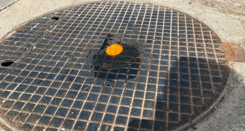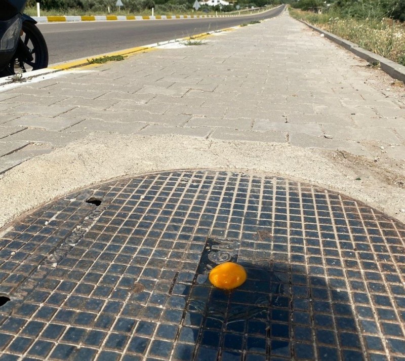 Balıkesir’in Erdek ilçesinde mevsim normallerinin üzerinde seyreden ve 45 derece olarak hissedilen sıcaklık nedeniyle vatandaşlar, sıcak havanın etkisini göstermek amacıyla asfalt ve mazgallar üzerinde yumurta pişirmeyi denedi.