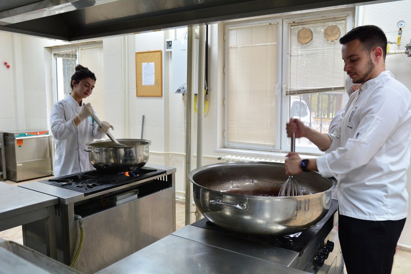Gastronomi ve Mutfak Sanatları Bölümü uygulama mutfaklarında hazırlanan lokumlar, öğrencilerin hem mesleki becerilerini geliştirmelerine hem de Ramazan ayının paylaşma ve dayanışma ruhuna katkı sunmalarına imkân sağlıyor. Öğrenciler, akademisyenlerin rehberliğinde gerçekleştirilen üretim sürecinde geleneksel tatlardan biri olan lokumun hazırlanış aşamalarını uygulamalı olarak deneyimliyor.