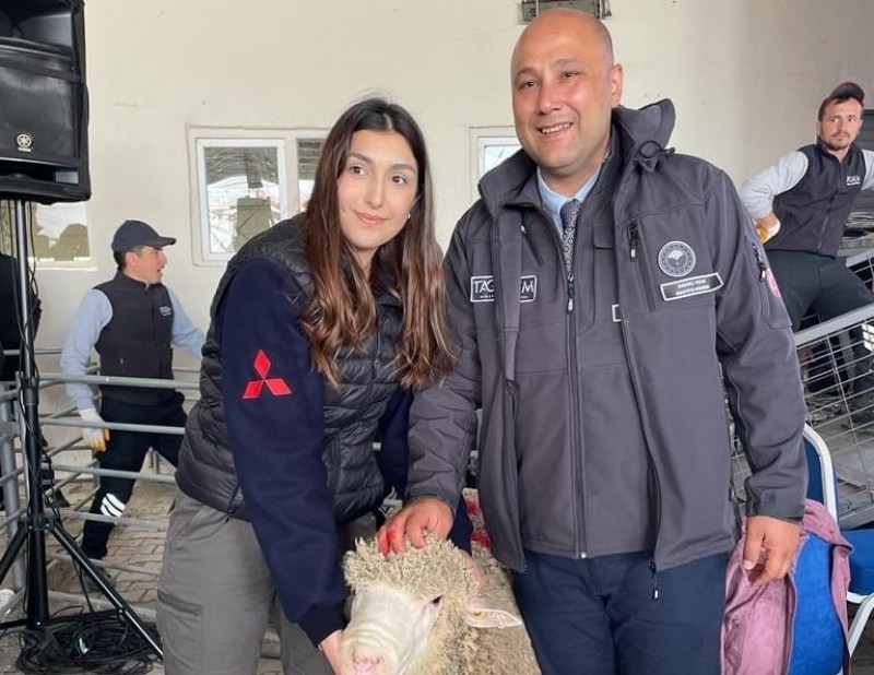 Açık artırmayı izleyen Tarımsal Araştırmalar ve Politikalar Genel Müdür Yardımcısı Dr. İbrahim Halil Sözmen, koçun sahibi 22 yaşındaki Şevval Ertur'u tebrik etti.
