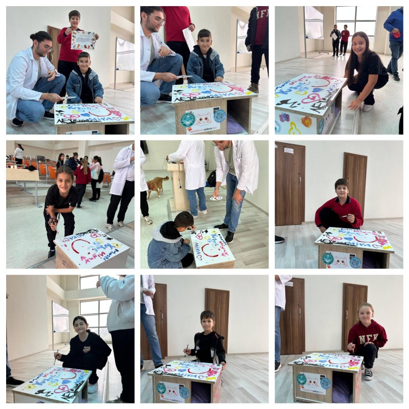 4 Ekim Dünya Hayvanları Koruma Günü kapsamında gerçekleştirilen etkinlikte öğrencilere, Balıkesir Üniversitesi Veteriner Fakültesi akademisyenlerinden Prof. Dr. Göksen Ayalp’in danışmanlığını yürüttüğü BAÜN Hayvanları ve Doğayı Koruma Topluluğu öğrencileri eşlik etti. Hayvan sağlığı, veteriner hekimliği uygulamaları ve hayvan refahı konularında farkındalık kazandırmayı amaçlayan ziyarette öğrenciler, fakülte bünyesinde yürütülen muayene, tedavi ve cerrahi işlemleri yerinde gözlemleme imkanı buldu.Karesi Necip Fazıl Kısakürek Ortaokulu bahçesinde birlikte yaşadıkları minik kedinin muayenesine katılan öğrenciler, sokak hayvanları için mama dağıtarak paylaşmanın mutluluğunu yaşadı. Öğrenciler ayrıca, kendilerine hediye edilen kedi evini renkli boyalarla boyayarak minik dostlarına anlamlı bir hatıra bıraktı.