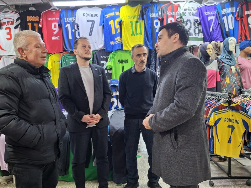 İYİ Parti Karesi İlçe Başkanlığı, saha çalışmaları kapsamında Karesi ticaretinin simge noktalarından biri olan tarihi Hasan Baba Çarşısı esnafını ziyaret etti. Karesi İlçe Başkanı Cahit Can Tekin ve İlçe Yönetim Kurulu üyeleriyle birlikte tam kadro sahaya inen İYİ Parti heyeti, esnafın sorunlarını yerinde dinledi.