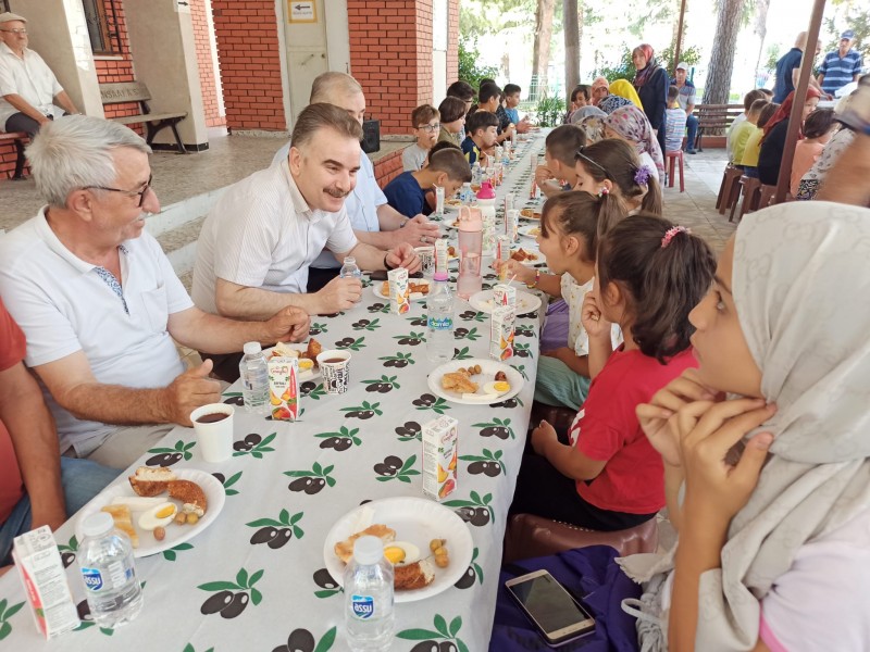 Edremit'te yaz ayında devam eden Kur-an kursu öğrencileri kahvaltıda buluştu.