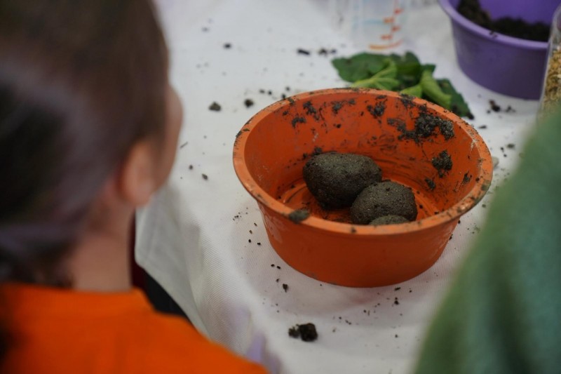 Atölye çalışmasında çocuklar, doğaya zarar vermeden yeşil alanların artırılmasına katkı sağlayan tohum toplarını hazırladı. Ailelerin de aktif olarak katıldığı etkinlik, hem eğitici hem de keyifli anlara sahne oldu.