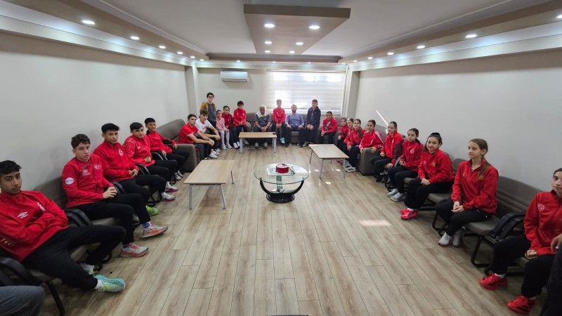 İlçe Müdürü İsmail Güzsoy’un makamında gerçekleşen buluşma, sporcuların elde ettiği başarıların değerlendirildiği samimi bir ortamda gerçekleştirildi. Dostane bir atmosferde gerçekleşen buluşmada sporcuların elde ettikleri dereceler ve süreç boyunca gösterdikleri azim konuşuldu. Program, başarı pastasının kesilmesiyle sona erdi.
