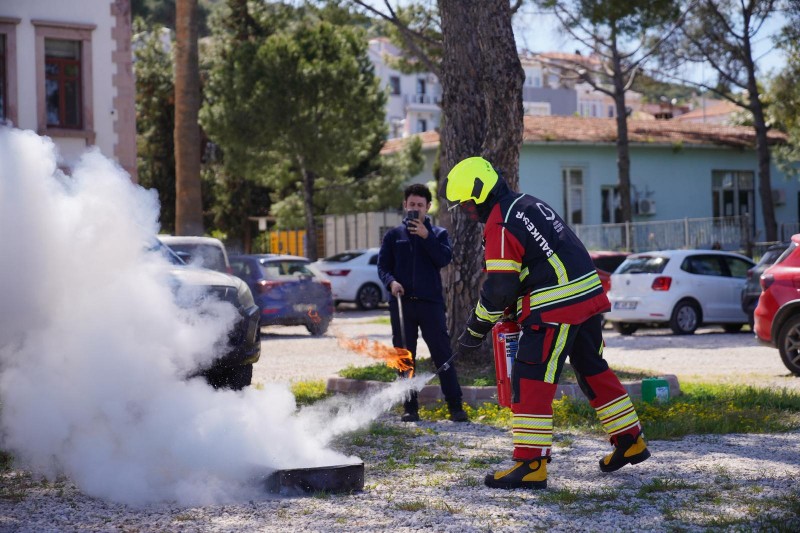 Bu kapsamda Ayvalık Belediyesi çalışanlarına da yangın tatbikatı yaptırıldı. Personelin aktif katılım sağladığı eğitimlerde, yangın anında doğru müdahale yöntemleri birebir uygulanarak olası risklere karşı farkındalık artırıldı.