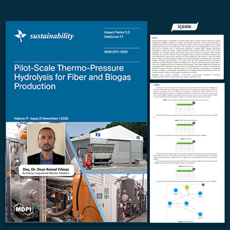 Balıkesir Üniversitesi (BAÜN) Burhaniye Uygulamalı Bilimler Fakültesi akademisyenlerinden Doç. Dr. Onur Kemal Yılmaz’ın da içerisinde yer aldığı akademisyenlerin imzasını taşıyan akademik çalışma, otel endüstrisinde sürdürülebilirliğin geliştirilmesinde çevre yönetim muhasebesi ve eko-yenilik uygulamalarının etkisini kapsamlı şekilde ortaya koydu.