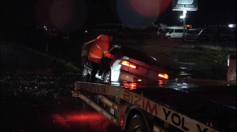Olay, Balıkesir Çevreyolu'nda meydana geldi. Yoğun yağmurun kayganlaştırdığı yolda kimliği ve plakası tespit edilemeyen otomobil, şeride geçerek direğe çarptı. Devrilen direk, İzmir’den Bursa istikametine doğru seyir halinde olan 35 DA 3654 plakalı otomobil için büyük tehlike oluşturdu. Sürücü, yola düşen direğe çarpmamak için direksiyonu kırarak yoldan çıktı. Aynı istikametten gelen bir tır ise direğe çarpmamak için son anda durabildi.