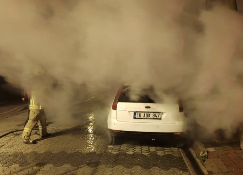 Manyas ilçesinde park halindeki bir otomobilde çıkan yangın, itfaiye ekiplerinin hızlı müdahalesiyle söndürüldü.