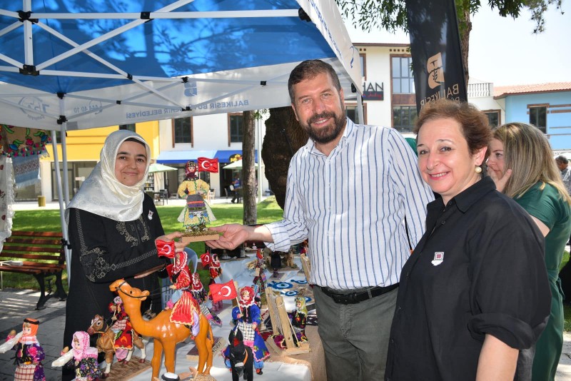 Sındırgı'da Sıfır Atık Projesi kapsamında kadınların ellerinde şekillenen ürünlerin yer aldığı sergi açıldı.