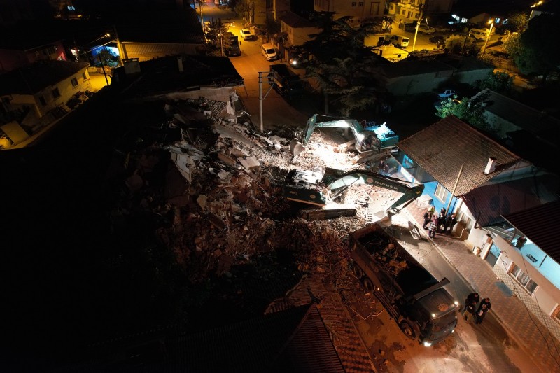 İlçede Balıkesir, Akhisar ve İbiler Caddelerinde bulunan 2, 4 ve 5 katlı toplam 9 ağır hasarlı bina ile 2 metruk yapının kontrollü yıkımı ekipler tarafından gerçekleştirildi. Çalışmalar sırasında güvenlik önlemleri en üst düzeyde tutuldu.Balıkesir Caddesi'ndeki asırlık çınar ağaçları, sararan yapraklarıyla birlikte sonbaharın hüznü içinde yıkım anlarına sessizce tanıklık etti. Enkaz kamyonlara yüklenirken çevredeki vatandaşlar, bir zamanlar hayatın aktığı sokaklarda şimdi sessizliğin hâkim olduğunu söyledi.