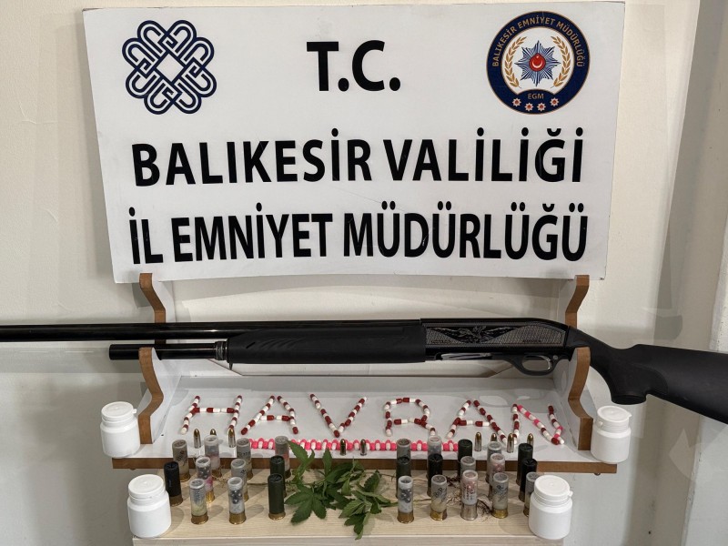 4 kutu halinde toplam 119 adet sentetik uyuşturucu hap, 7 adet 9.19 çapında, 2 adet 7.65 çapında fişek, bir adet Magnum marka seri numarası bulunmayan ruhsatsız tüfek, Ruhsatsız Tüfeğe Ait 26 adet kartuş, 3 Kök Ekili vaziyette hint Keneviri ele geçirilip, şüpheliler hakkında tahkikata başlanıldı.