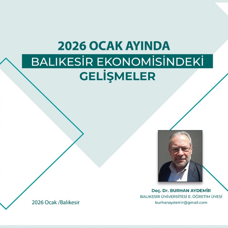 Balıkesir Üniversitesi emekli öğretim üyesi Doç. Dr. Burhan Aydemir tarafından hazırlanan Balıkesir Ekonomisindeki Gelişmeler Raporunun Mart 2026 dönemi verilerinde 2026 Ocak Ayında Balıkesir Ekonomisindeki Gelişmeler değerlendirildi.
