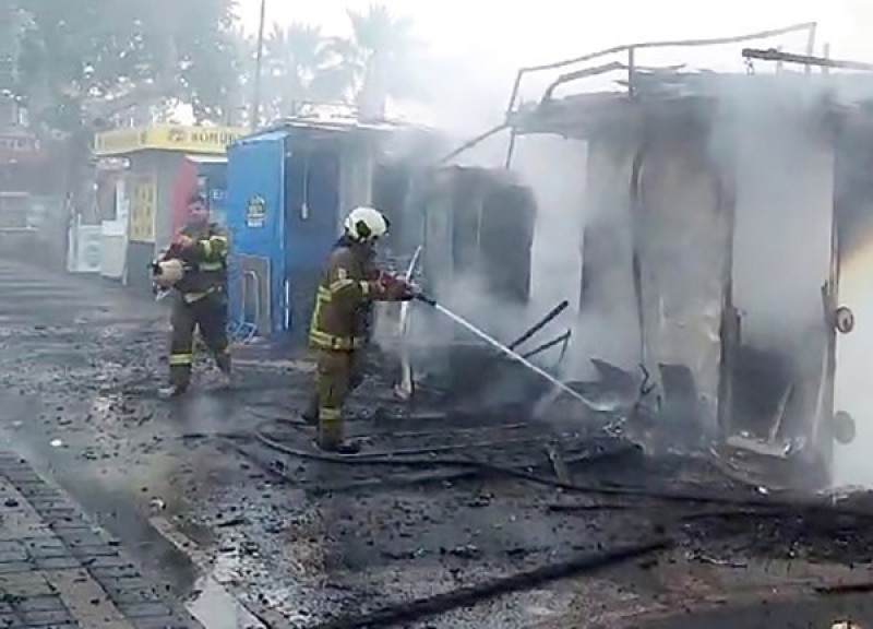 Edremit ilçesi Akçay'da kordonda çıkan yangın büyük paniğe neden olurken, 3 iş yeri kullanılamaz hale geldi.