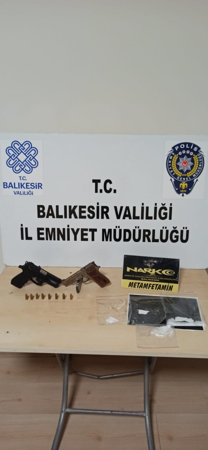 Balıkesir İl Emniyet Müdürlüğü Asayiş Şube Müdürlüğü ekipleri genel güvenliği ve asayişi sağlamak amacıyla son 1 haftada Altıeylül, Karesi, Ayvalık, Bandırma, Bigadiç, Burhaniye, Edremit, Erdek, Gönen ve Susurluk ilçelerinde yapılan çalışmalarda çeşitli suçlardan aranan 24 şahıs gözaltına alınırken, adli makamlara sevk edilen 12 şahıs tutuklandı. Yapılan aramalarda; 22 adet ruhsatsız tabanca ve 301 adet fişek, 11 adet ruhsatsız tüfek ve 14 fişek, 24 adet kurusıkı tabanca ve 14 adet fişek ele geçirildi. (İHA)