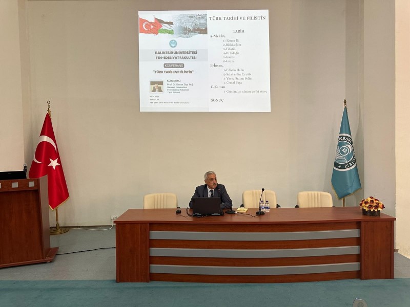 Balıkesir'de Fen-Edebiyat Fakültesi tarafından Tarih Bölümü Başkanı Prof. Dr. Kenan Ziya Taş'ın konuşmacı olduğu "Türk Tarihi ve Filistin" konulu bir konferans düzenlendi.
